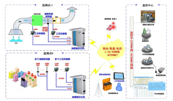 油煙監(jiān)測系統(tǒng)是為滿足環(huán)保行業(yè)特殊需求,利用物聯(lián)網(wǎng)感知技術(shù)、GPRS 無線通信技術(shù)等開發(fā)的一套高性能的集油煙監(jiān)測、數(shù)據(jù)采集、數(shù)據(jù)傳輸為一體的系統(tǒng)。可對企業(yè)油煙排放濃度、凈化器運行狀態(tài)、風(fēng)機(jī)運行狀態(tài)等指標(biāo)進(jìn)行在線監(jiān)控,從而將油煙治理設(shè)施工況數(shù)據(jù)與油煙濃度數(shù)據(jù)統(tǒng)一起來,為環(huán)保局提供直接有效且真實的油煙排放狀況的專用油煙監(jiān)測設(shè)備。