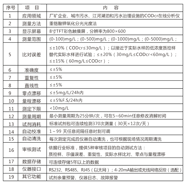 化學(xué)需氧量(Chemical Oxygen Demand,簡稱COD)是指在強(qiáng)酸并加熱條件下,用重鉻酸鉀氧化處理水樣時所消耗氧化劑的量,以氧的mg/L表示。它是綜合評價水體污染程度的重要指標(biāo),是水質(zhì)監(jiān)測的重要水質(zhì)參數(shù),是我國實施總量排放控制的重要指標(biāo)之一,同時也是河流和工業(yè)廢水的研究及污水處理廠的處理效果的一個重要而相對易得的參數(shù)。